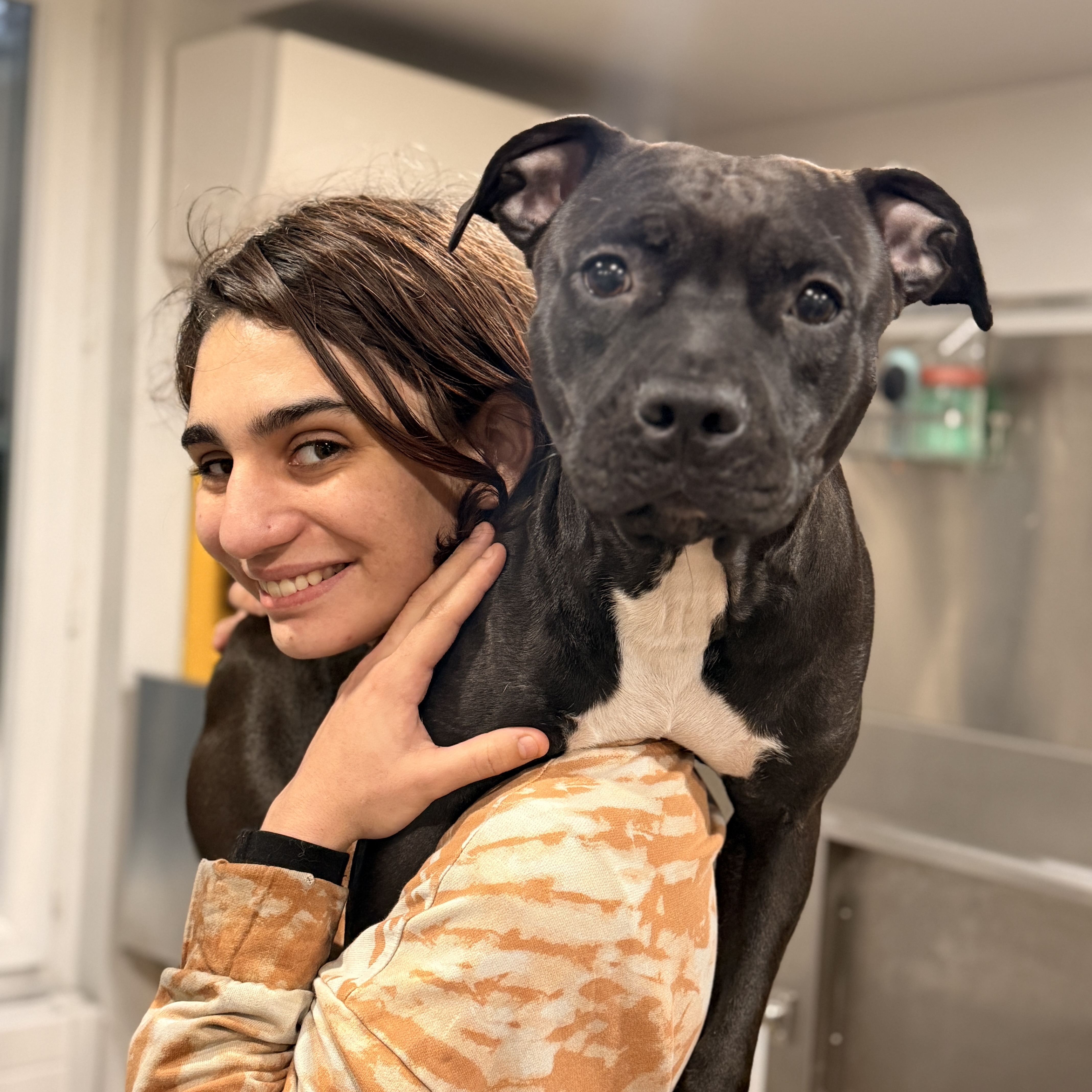 Eve Bompoil est la toiletteuse professionnelle de la boutique À 4 PATTES à Paris, spécialisée dans le toilettage pour chiens et chats, toutes races et tous gabarits. Formée dans un salon de toilettage de prestige parisien, elle dispose de plusieurs expériences en toilettage canin et félin et maîtrise les bains, coupes à la tondeuse, coupes aux ciseaux et épilations. Propriétaire d’une staff pleine d’énergie, NOVA, Eve est habituée à gérer des chiens vifs, sensibles ou émotifs. Elle accueille dans notre salon de toilettage à Paris les chiens de petite, moyenne et grande taille, ainsi que les chats, quel que soit leur poids ou leur race, et met un point d’honneur à proposer un toilettage à Paris respectueux du bien-être animal, dans une approche douce, patiente et bienveillante.