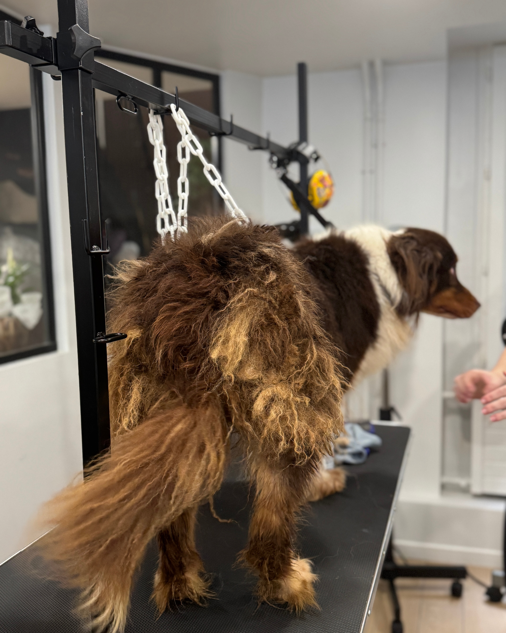 La mise en beauté finale, avec le brushing et les soins d’entretien, redonne éclat et légèreté à son allure. C’est un soin complet qui permet de repartir propre, détendu… et prêt à se faire admirer au parc des Buttes-Chaumont ou en pleine promenade dans les rues du 19e arrondissement de Paris.