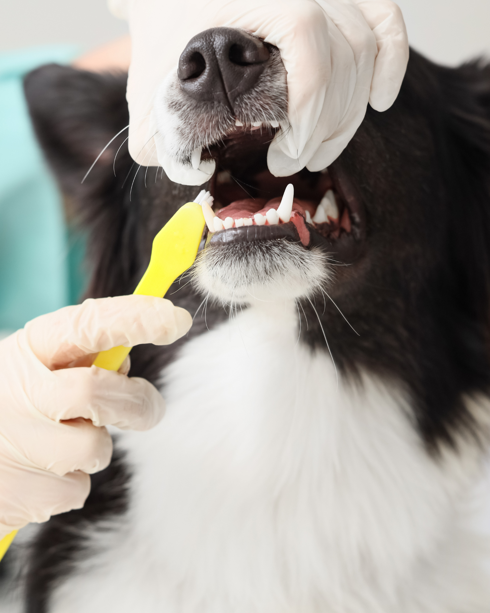 Brossage des dents avec une brosse douce Puppy Polisher et un dentifrice au goût bœuf de la marque Bubimex, spécialement conçu pour les chiens. Soin réalisé en douceur, sans produit nocif pour l’animal.